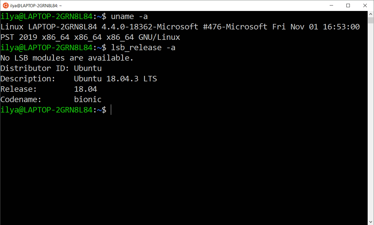 First, let us enable WSL and install a Linux distribution. The detailed steps are given in this online tutorial. Don’t forget the password for the Linux account you’ve just created: you will need it to install some software. At the end of this step, you should be able to run a “bare-bone” Ubuntu Linux terminal as an application within your Windows system. In my case, it looks as follows.